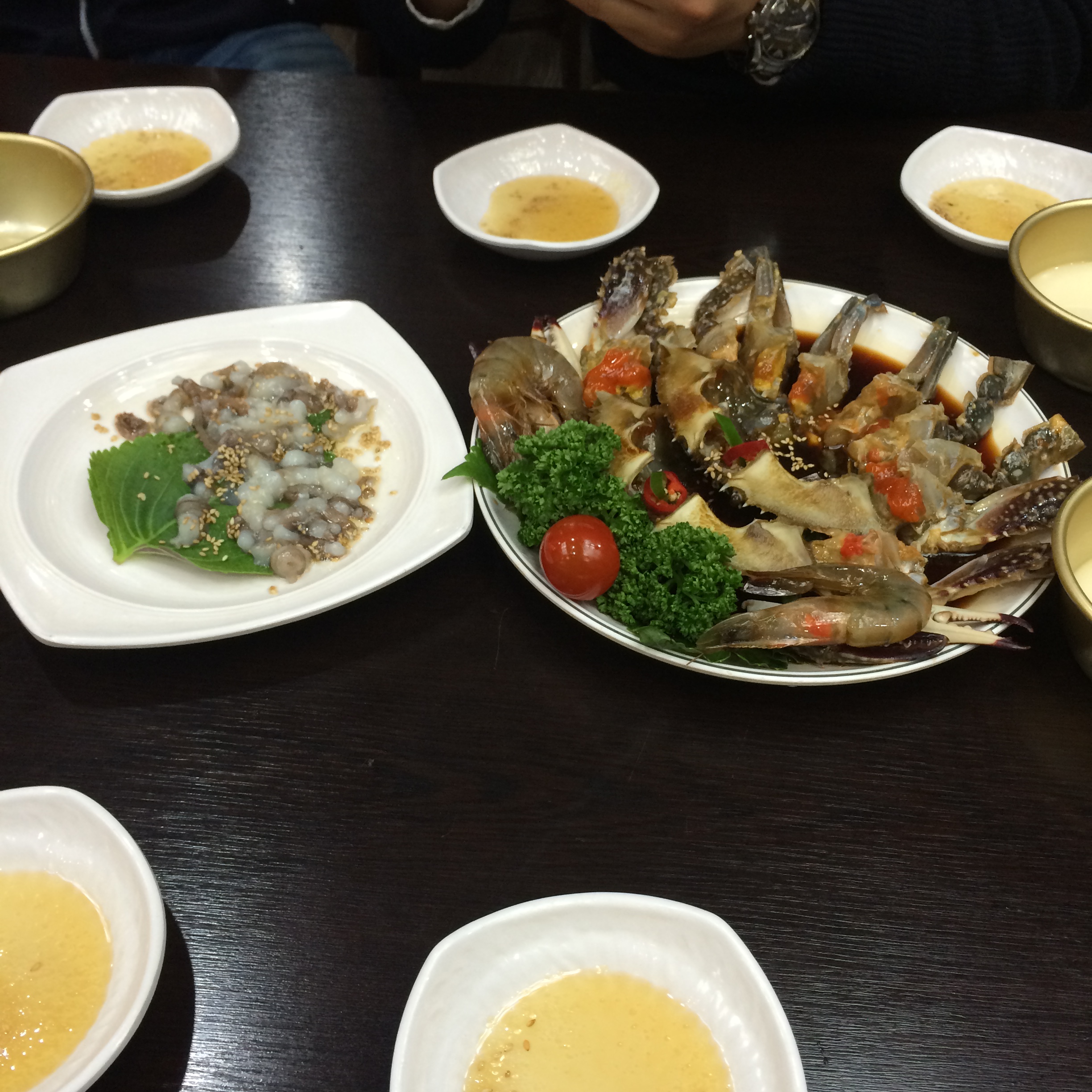 タコ足のお刺身とカンジャンケジャン
