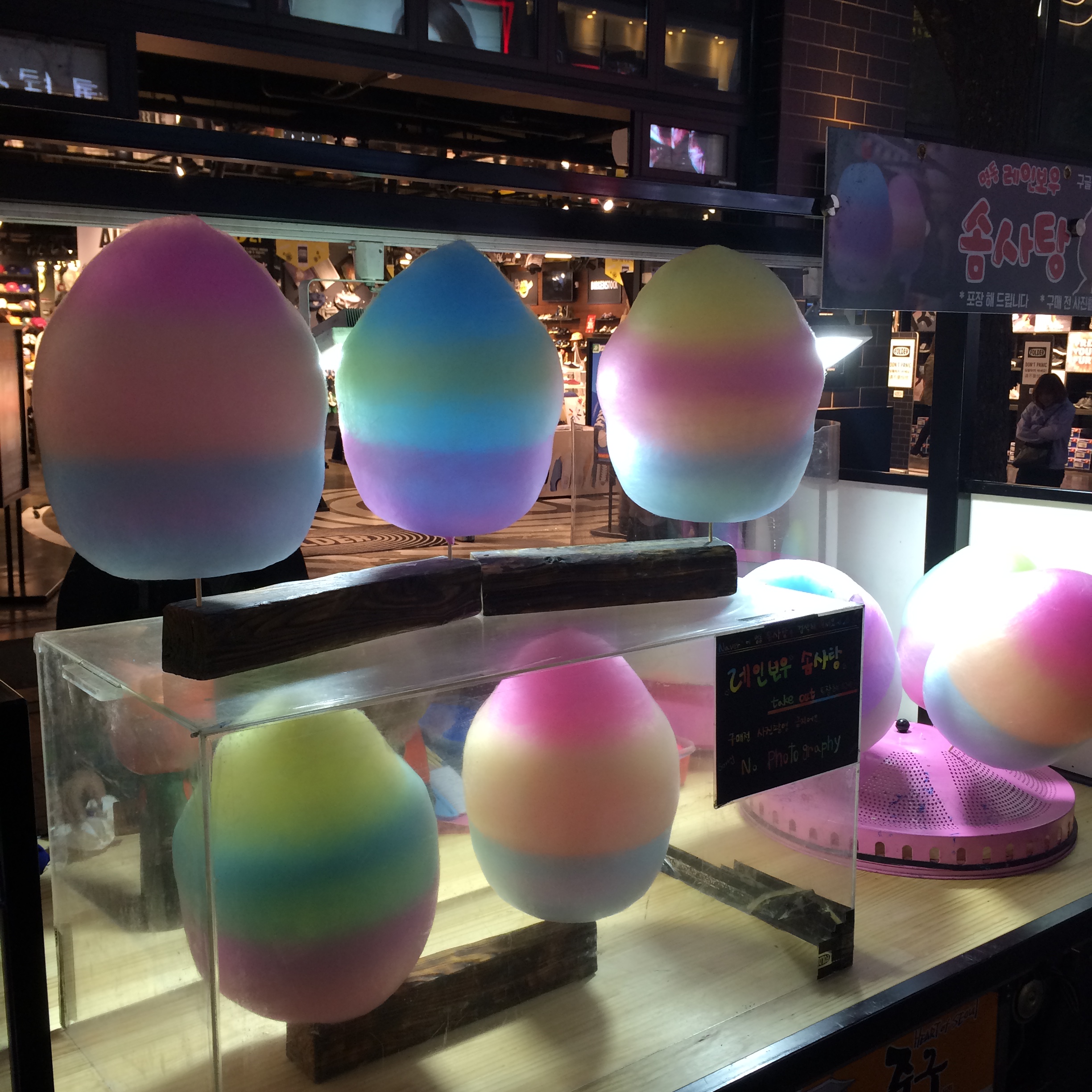 明洞の屋台ではこんなカラフルな綿菓子も売ってましたよ。