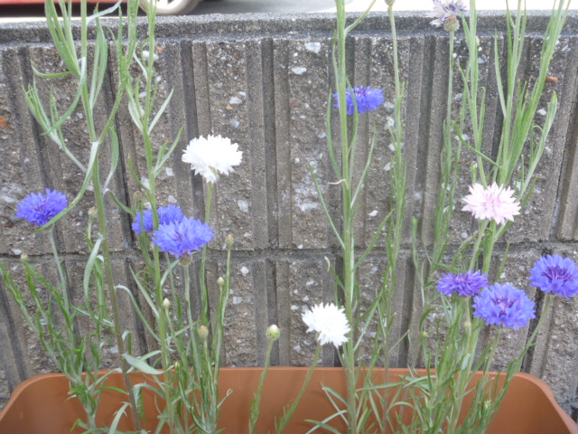 だいぶ前に種を植えた 矢車草 がやっと花 咲いてくれました~