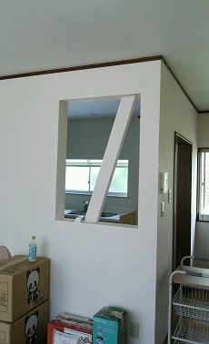 キッチンとリビングの間の壁に、開口部を設置しました。