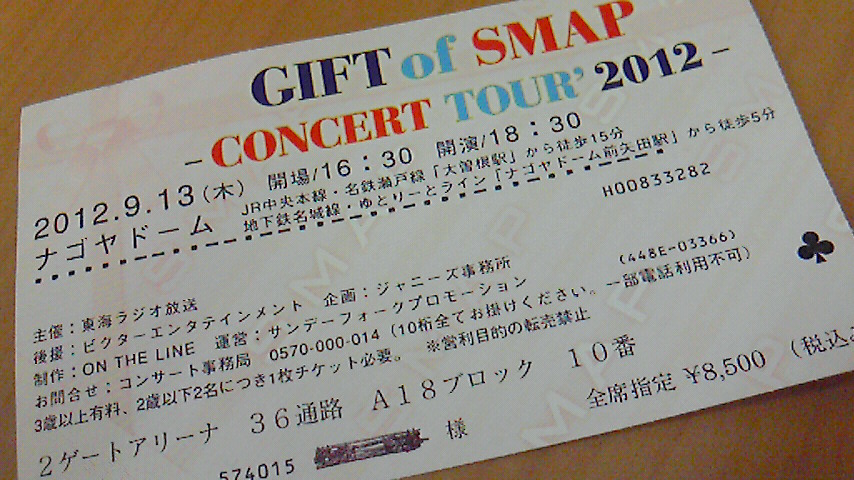 急いで、ナゴヤドームへ向かい、SMAPのコンサート