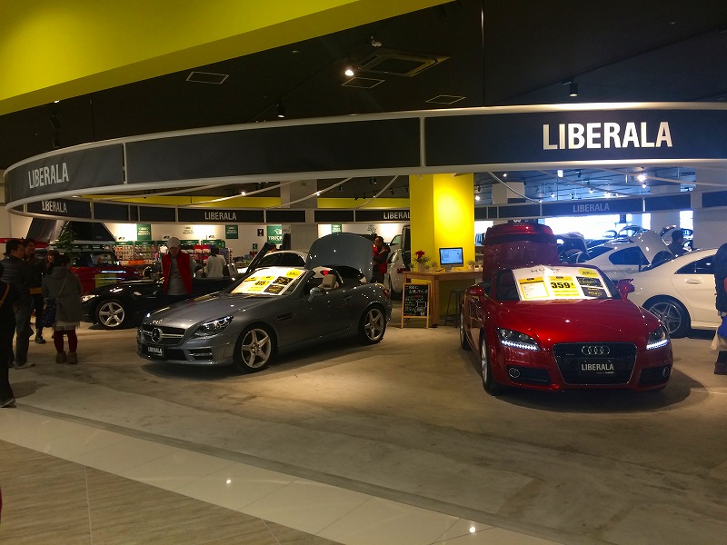 店内で車売ってたり