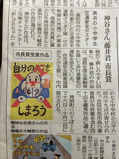 高浜市の小中学校(小学校5校、中学校2校)全7校、1669点応募、優秀作品40点がありそのうち市長賞を含む各賞の受賞者が市役所へ呼ばれました。