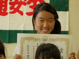 市長賞は小学生、中学生、各1名だったらしく娘も緊張しながら賞状を受け取っていました![]()